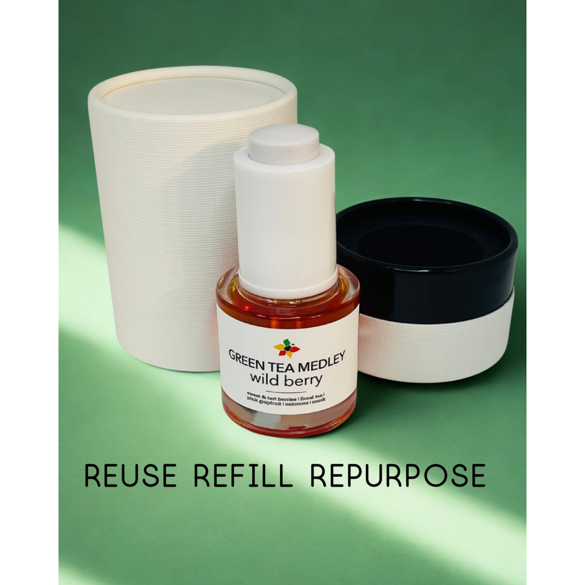- sustainable design - reuse, refill, repurpose the bottle and box